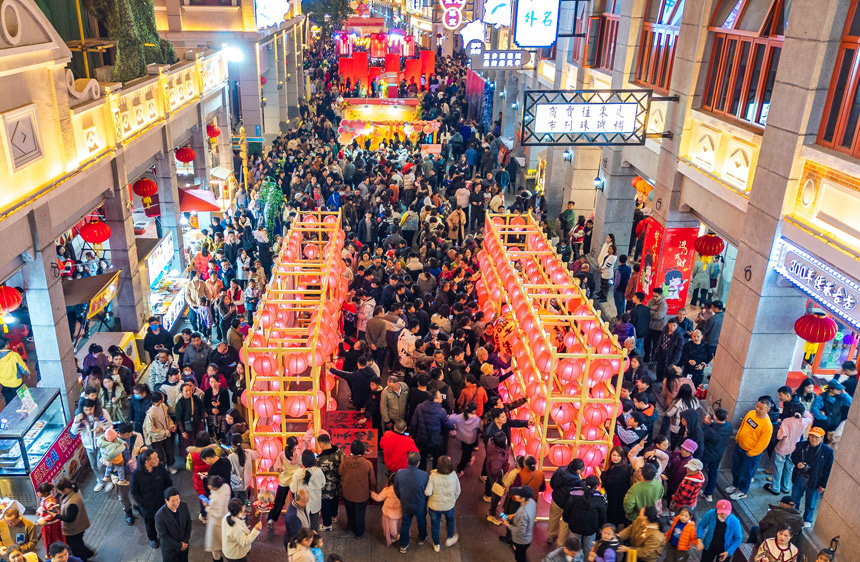 活动现场人头攒动。钟秋霞摄 “‘梧’请客”元宵文旅团圆晚宴、“骑楼‘宵’遥游”街头光影巡游、“百事如意”灯谜会……2月12日晚,“喜乐梧州 梦幻良宵”上元团圆光影汇举行。活动现场人头攒动,热闹非凡,众多市民游客共同度过了一个难忘而充满非遗魅力的元宵佳节。(钟秋霞)元宵文旅团圆晚宴...