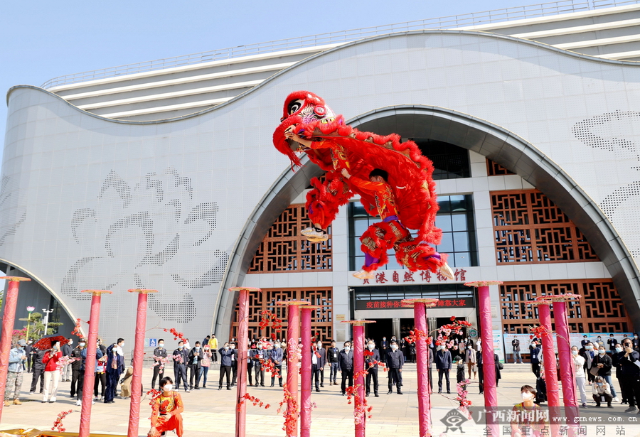 4月3日,贵港市“壮族三月三“活动现场的舞狮表演。 记者 唐正芳 通讯员 张庆杰 摄