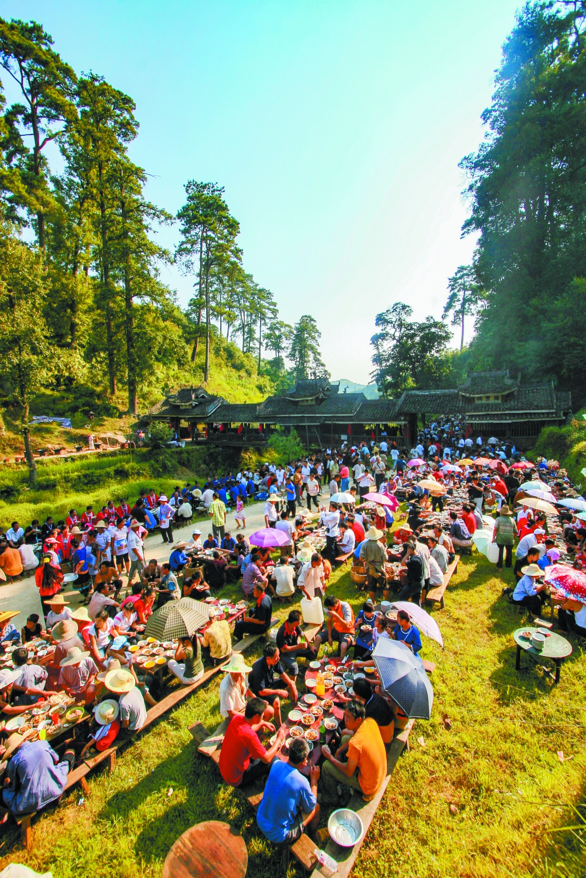 正是得益于人口基数大,他们一年一度的“百家宴”吸引了成千上万人前来参加。在这个节日里,来自十里八乡各村寨的侗族群众来到村里吃百家宴、舞牛、跳多耶、对歌等。