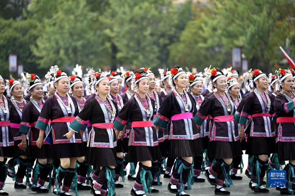 当日,广西三江侗族自治县举行侗族多耶节活动,来自各乡镇的群众参加多耶比赛,欢唱侗乡美好生活。