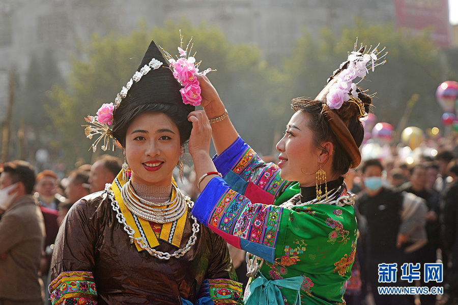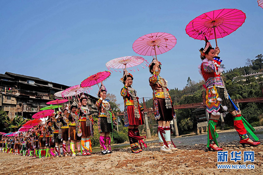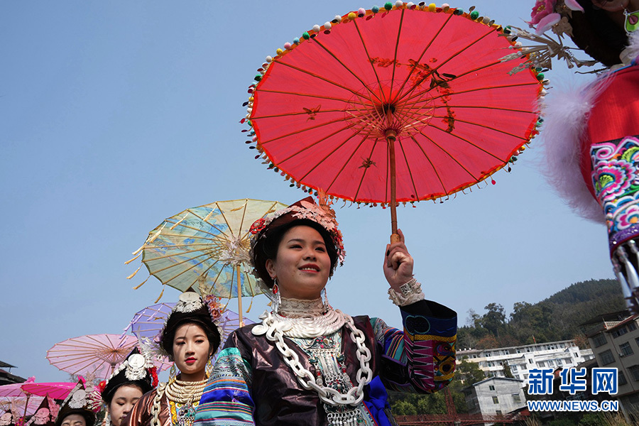 春节期间,广西融水苗族自治县举行“姑娘节”,当地苗族和侗族未婚女性按传统习俗,穿上节日盛装,打着花伞,尽情展示民族之美和青春之美。(龙涛 黄诚)