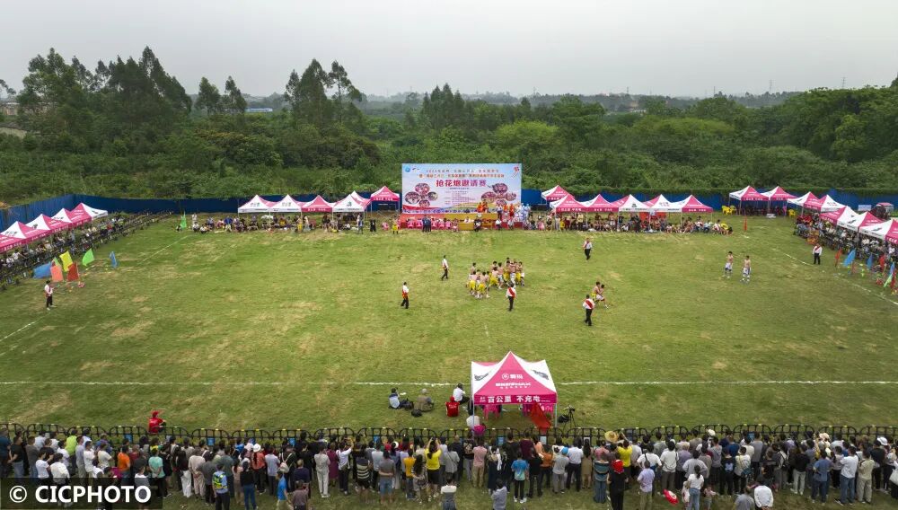2023年4月22日在广西南宁市武鸣区拍摄的“壮族三月三”抢花炮比赛现场。(无人机照片)