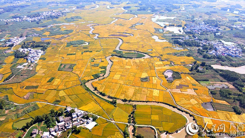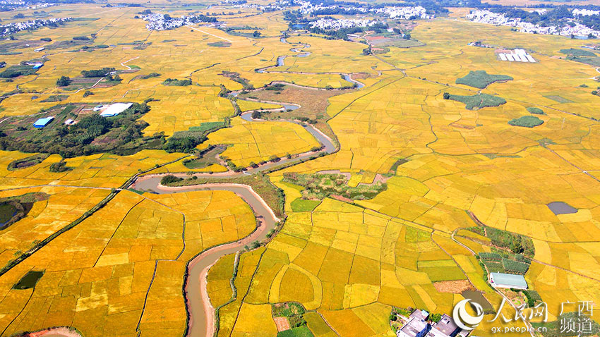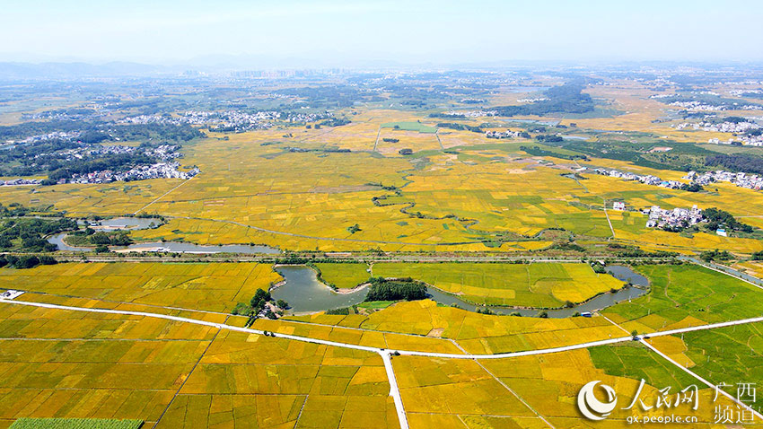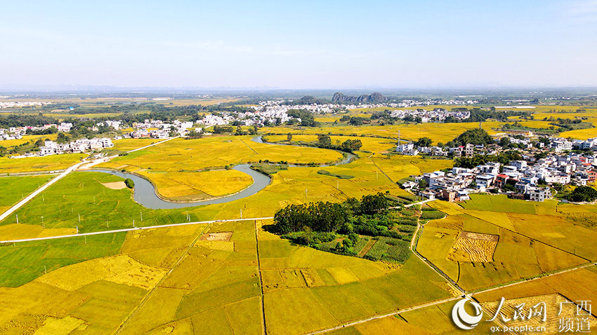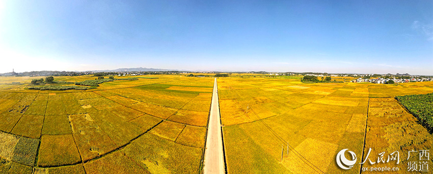 宾阳县:又是一年丰收季 金黄稻田美如画