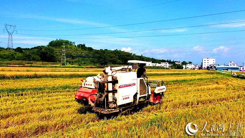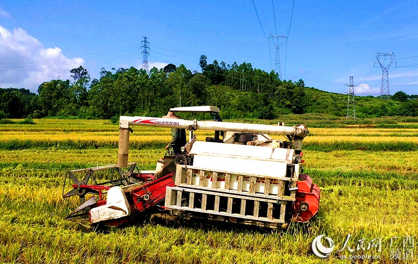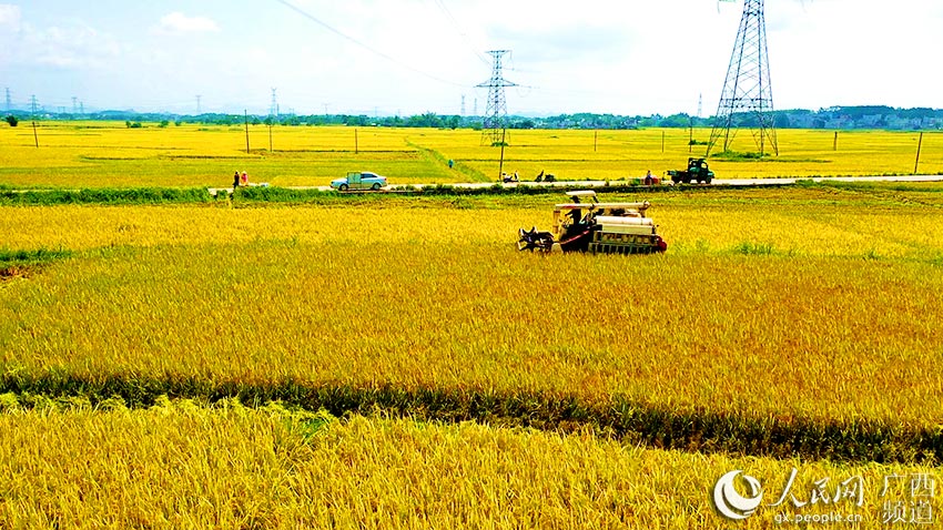 秋天来了,稻子熟了,美如画的金黄稻田里,满是丰收的景象。在宾阳县,粮农们趁着晴好天气,抢收稻谷,确保颗粒归仓。