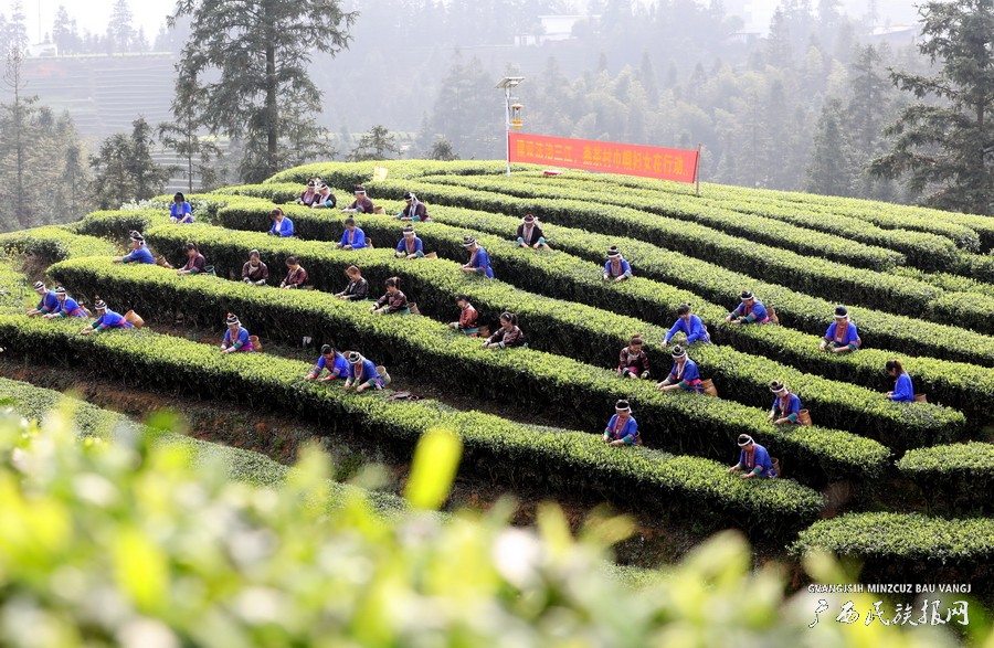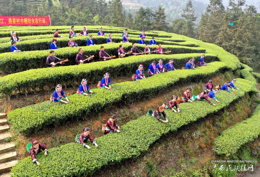 当日,柳州市三江侗族自治县良口乡燕茶村举行“巾帼心向党 奋斗新征程“采茶比赛活动,全村7支队伍35名妇女代表参加比赛。茶叶是燕茶村群众增收致富的重要产业,目前全村茶叶种植面积3500亩。(通讯员 吴练勋)