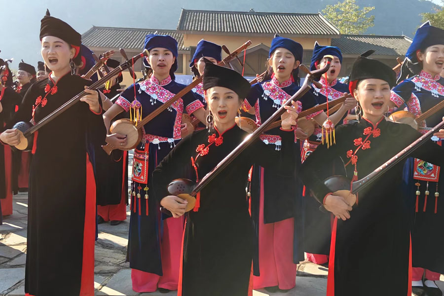 摘要提示:三江县林溪镇程阳八寨景区举办月也活动,邀请该镇冠洞村、平铺村等数支芦笙队欢聚一堂,以芦笙踩堂、赛芦笙、多耶、百家宴等丰富节目,欢庆侗年节到来,侗乡多彩风情吸引众多村民及游客前往观赏体验。12月13日,在广西三江侗族自治县林溪镇程阳八寨景区,侗族妇女在吹地筒。龚普康 摄...