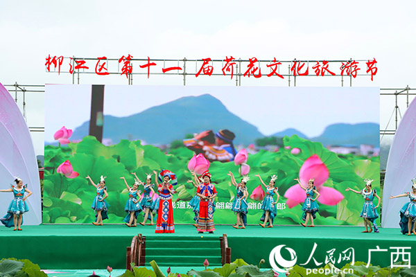 6月29日,柳江区第十一届荷花文化旅游节在广西柳州市柳江区百朋镇举行,活动将持续一个月,让广大游客近距离感受荷花文化魅力。歌舞表演《乡约柳江》。 人民网 付华周摄 开幕式上,演员们献上了一场视听盛宴,《田园醉美在柳江》《江山》《壮乡丰收乐》《乡约柳江》等...