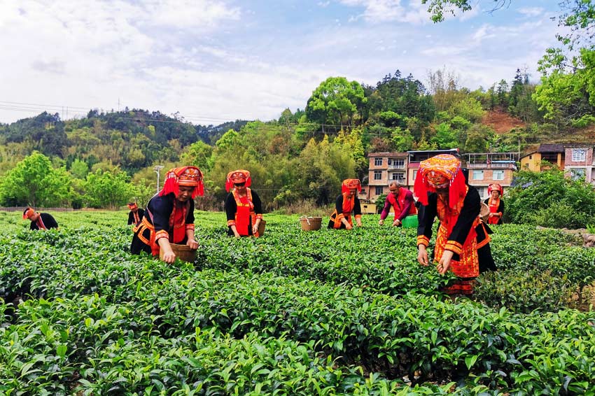 据了解,黄龙村2020年以前为深度贫困村,为进一步发展茶叶经济,带动群众增收致富,近年来,该乡根据乡村振兴产业绩效发展要求,将产业发展列入绩效考核,大力发展特色产业种植,逐步形成了“山上林果戴帽、山中绿茶缠腰、山下新村新貌“的新农村格局。同时采取“合作社+家庭农场+基地+农户“经营模式,为参与种植的农户提供技术支持,推进茶山“统一种植、统一管护、统一销售“,努力促进农民增收,巩固脱贫成果,助力乡村振兴。