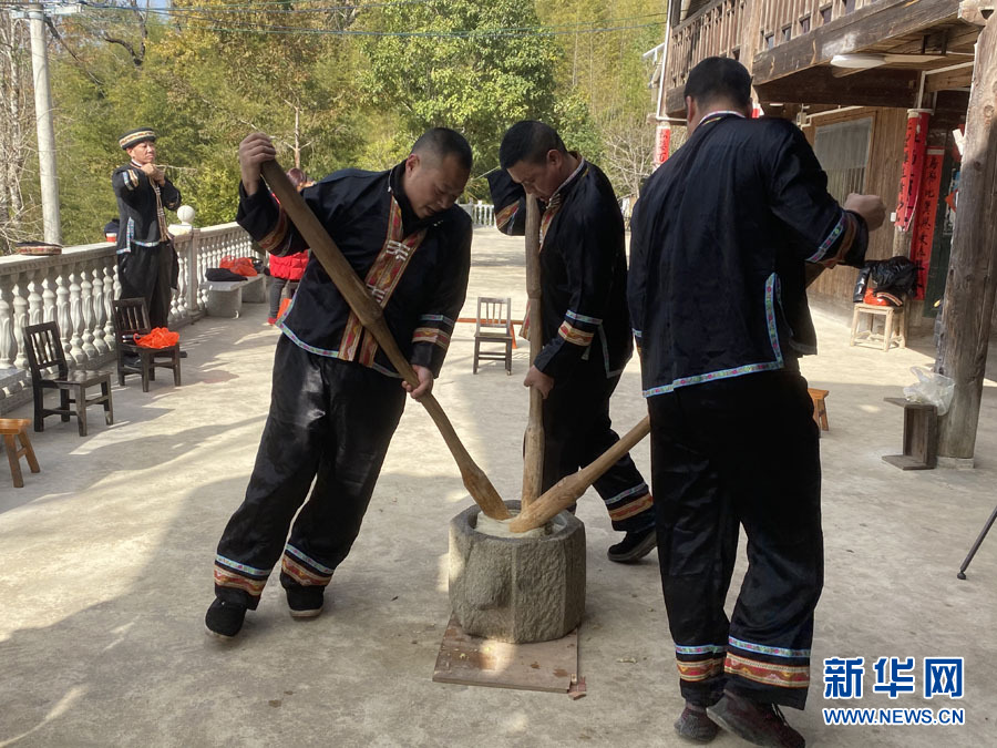 每年的腊月,广西桂林市资源县河口瑶族乡大湾村都会进行一项重要的年俗活动——打糍粑。左邻右舍、亲朋好友相聚在一起,一边做糍粑,一边聊着天,在温馨快乐的氛围中共享丰收喜悦,共庆美好生活。