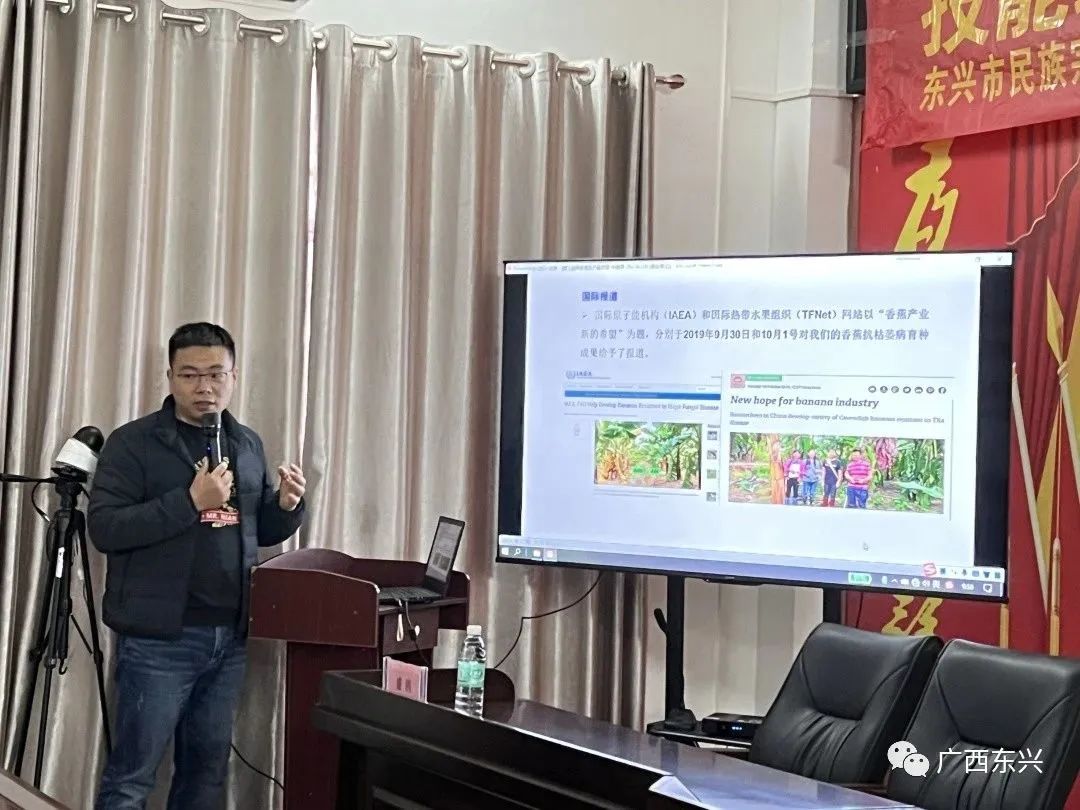 为推动边境地区的产业发展、大力培育美食蕉特色产业,3月29日,由东兴市民宗局、马路镇政府联合主办,中越泰国际食品有限公司承办的美食蕉种植技能培训班在马路镇大桥村举行,马路镇各村25名种植户参加了此次培训。