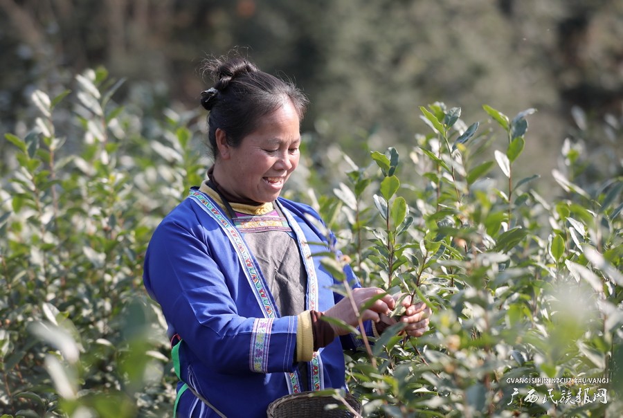1月19日,大寒将至,天气回暖,三江侗族自治县梅林乡车寨村平寨屯茶园基地初露茶尖,村民们纷纷到茶园开采新茶,祈盼新年有个好收成。近年来,三江着力念好茶叶经,倾力打造“三江早春茶—敢为天下先“品牌,2020年,全县茶园总面积突破20万亩,干茶产量1.55万吨、产值16.80亿元,并荣获全国“2020年度茶业生态建设十强县““2020年度茶业百强县“等荣誉称号,茶叶产业已成为侗乡群众脱贫致富的“绿色银行“。(通讯员 龚普康)
