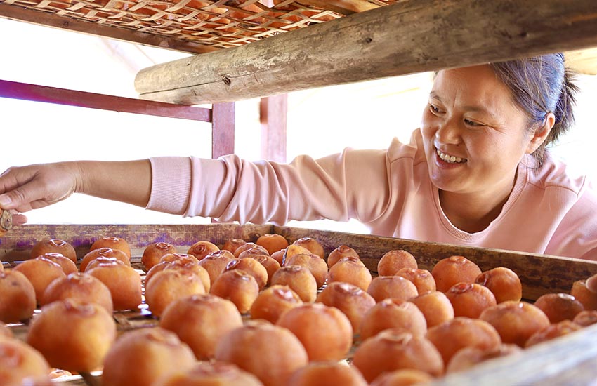 年年岁岁柿柿红,又到了柿子丰收的时节。在广西阳朔普益乡大山村里,村民们趁着晴好天气忙着摘果、选果、制饼、晾晒、打包、外运,一派丰收的繁忙景象,别有一番“柿“情画意。(莫筱茜、熊晶)