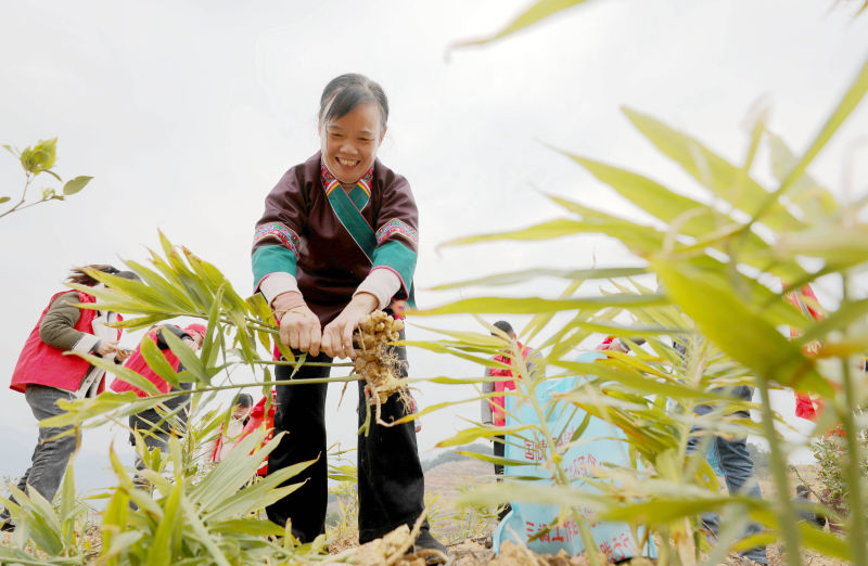 党员干部们在油茶基地里采收生姜。龚普康摄