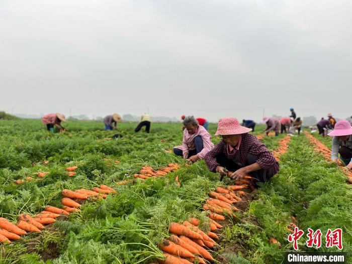 农民抓紧抢收胡萝卜。陈海婷 摄图为胡萝卜采收现场。毛美岚 摄图为福桥村农田采收现场。毛美岚 摄图为农民将胡萝卜装车。潘德鸿 摄农民在采收胡萝卜。潘德鸿 摄农民将胡萝卜装袋。潘德鸿 摄近日,在广西贺州市八步区信都镇福桥村的农田里,几辆运载拖拉机来回穿梭,农民们熟练地将胡萝卜分拣、装袋、上车。...