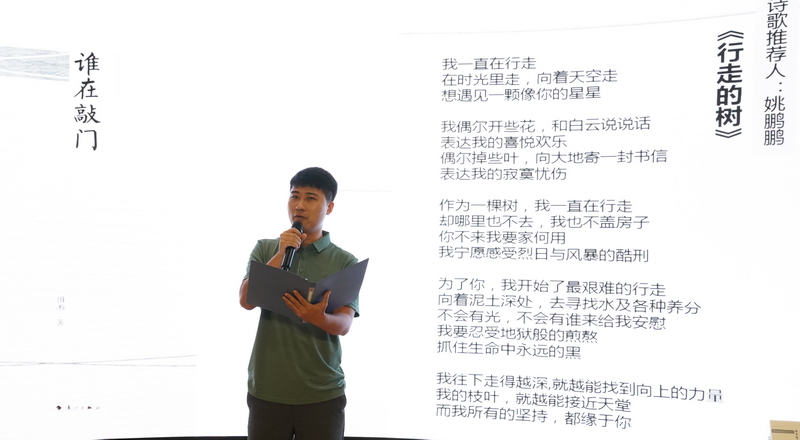 “诗歌可以是自己和他人情感的表达,重要的是如何捕捉与生命息息相关的东西,更深层次地去思考人生的经历,找到它的切入点和痛点,表达出和他人不一样的感受,这样创作出来的作品才会有品质。任何东西都有诗意的一面,我们需要从细微的地方去发现和思考,怀着诗歌的情怀和爱好去创作。“分享会上,诗人田湘与读者们分享诗集创作背后的故事,并介绍了《谁在敲门》的创作初衷,写诗歌也是像写爱情故事一样,作者不一定是在写自己。