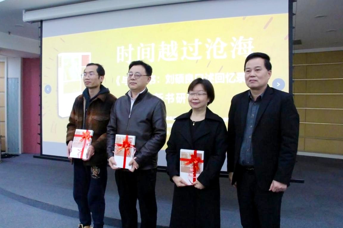 研讨会期间,漓江出版社分别向广西师范大学桂学博物馆、广西民族大学外国语学院、广西大学外国语学院赠送《与时间书:刘硕良口述回忆录》。