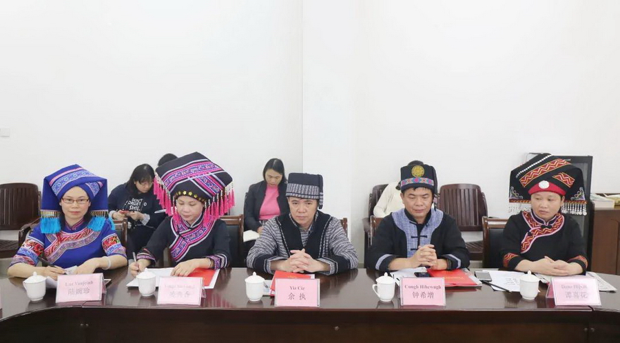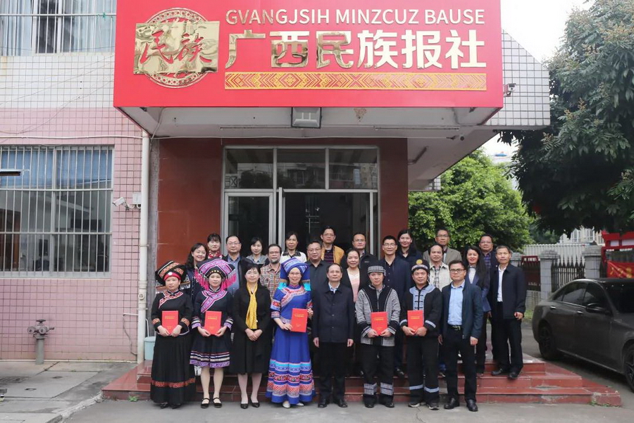 3月26日,第四届广西壮文作家作者签约仪式在南宁举行,主办单位广西民族报社与5位壮文作家作者签订了为期一年的合作协议。自治区民宗委副主任翚永红出席签约仪式并讲话。中国民族语文翻译局壮语文室、自治区民宗委民族语言文字处、 广西民族语文研究中心、 广西少数民族古籍保护研究中心、广西民族理论政策研究室、 广西民族出版社、三月三杂志社、广西民族高中等从事民族语文工作的兄弟单位主要负责人及专家学者、广西民族报记者编辑30多人参加了签约仪式,并就壮文作家作者培育及新时代壮文事业发展进行研讨。