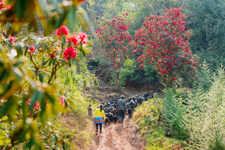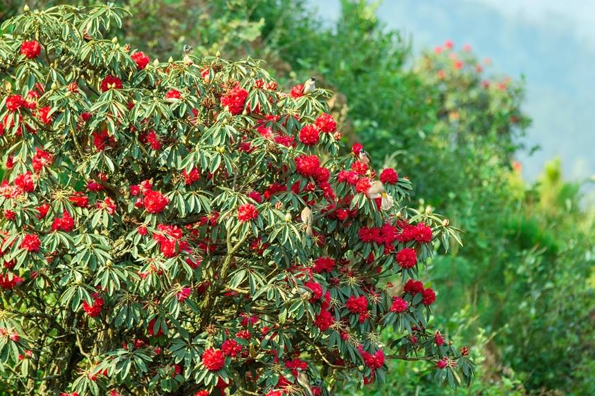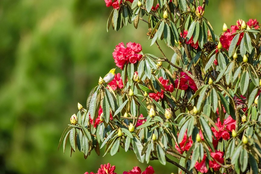 杜鹃花开吸引小鸟驻足。李世华摄
