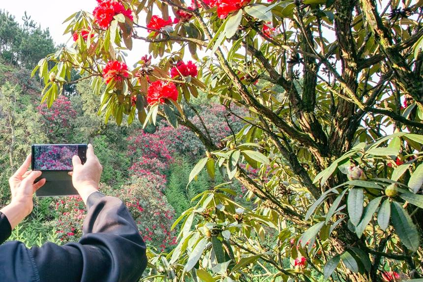 游客正在拍摄杜鹃花。李世华摄