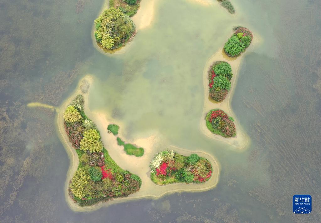 近日,广西南宁市南湖湖心生态岛上木棉、三角梅等鲜花盛开,构成一幅春意盎然的美丽画卷。