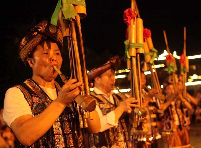 随着国内防控疫情的好转,旅游业又兴旺起来。2020年9月12日晚,柳州市融水苗族自治县在民族体育公园开展吹芦笙、跳踩堂舞、拉鼓、玩竹竿舞活动,吸引众多观众观看,热闹非凡。(廖子渊)