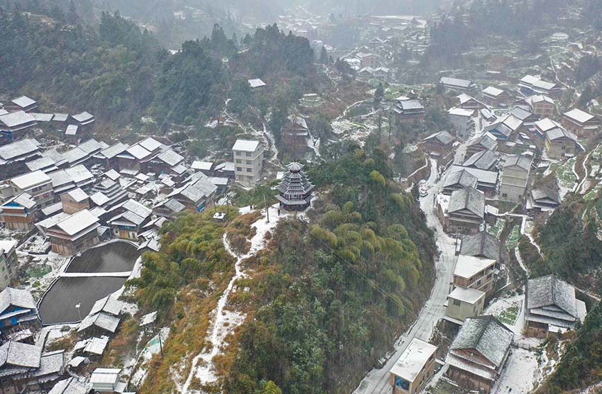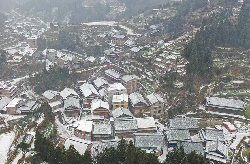 白雪皑皑的玉马村苗寨。龚普康摄