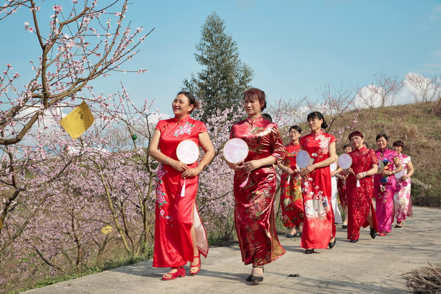 春分时节,祖国的南方春意盎然,姹紫嫣红。3月17日,在环江毛南族自治县大安乡金桥村油桃种植示范基地里,经过一冬的枯寂,桃花似是卯足了力气,开得不可一世的恣意和热闹。桃花下,穿着旗袍、民族服装的游客们,走在春天里,漫步花海中,或赏花,或自拍,与这桃花来一场美丽的邂逅。