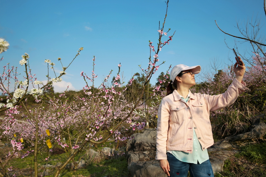游人在与桃花自拍 韦睿摄