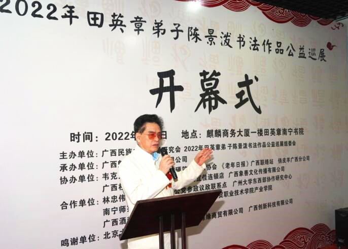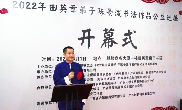 张文学宣布“2022年田英章弟子陈景泼书法作品公益巡展“开幕