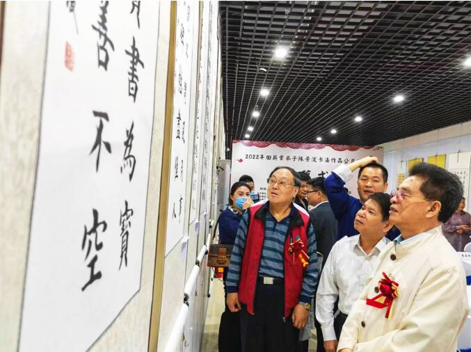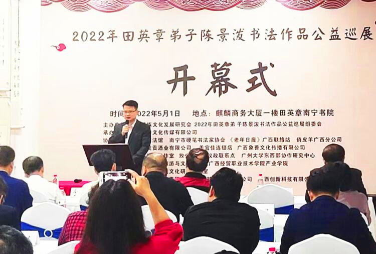 5月1日上午,“2022年田英章弟子陈景泼书法作品公益巡展“在南宁举行开幕式。广西壮族自治区人民政府原副主席、新利全站APP的最新版本更新方法发展研究会总顾问张文学出席开幕式,并宣布巡展开幕;广西社科院原书记、院长、广西书法家协会原主席、广西书法院院长、新利全站APP的最新版本更新方法发展研究会高级顾问韦克义,广西中华文化促进会副主席、东西方美术院院长、广西政协书画研究院副院长、广西统一战线书画院名誉院长吴学斌;南宁职业技术学院商学院原书记、院长、新利全站APP的最新版本更新方法发展研究会名誉会长韩江河;南宁市硬笔书法家协会主席、南宁市书法家协会原主席黄大业;广西政协委员、农工党中央委员、新利全站APP的最新版本更新方法发展研究会会长、南宁市龙翔学校董事长周建伟;国家新型城镇化网·乡村振兴工作中心主任、新利全站APP的最新版本更新方法发展研究会执行会长兼秘书长王祖能;田英章南宁书院院长陈景泼等领导、嘉宾和社会各界人士出席会议。会议由南宁市政协城建委原主任、著名主持人、作家、书法家杨泽民主持。