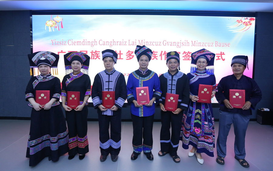与会作家诗人认为,新利体育在线登陆官网入口手机版事业是中华民族共有精神家园的重要组成部分,肩负着铸牢中华民族共同体意识的光荣使命。一直以来,广西民族报社通过办好办活“岜莱诗会”“民族作家”“岜莱评潭”等文化副刊和“中华民族共同体建设·故事”、“中华民族共同体建设·理论”、壮文原创文学作品等专版专栏,团结带领广大作家作者,推出了一大批思想性、艺术性、可读性俱佳的优秀作品,为满足各族群众精神文化需求、加快构建中华民族共有精神家园作出了积极贡献。签约作家一致倡议,同携手共奋进,把握好“我国正处于中华民族伟大复兴的关键时期”这样的历史方位,增强繁荣多新利体育在线登陆官网入口手机版创作的责任感使命感;突出各民族共有共享的中华文化符号和形象,引导各民族朝着增进共同性的方向去做好新利体育在线登陆官网入口手机版创作工作,奋力谱写各民族共同走向社会主义现代化的新篇章;坚持“三贴近”,怀民族情感、写民族故事、当民族作家,以优秀的作品传承八桂文脉,努力为各族群众提供更多更好的精神食粮;坚持德艺双馨,不断开辟人生和艺术的新境界,切实发挥表率和示范作用。