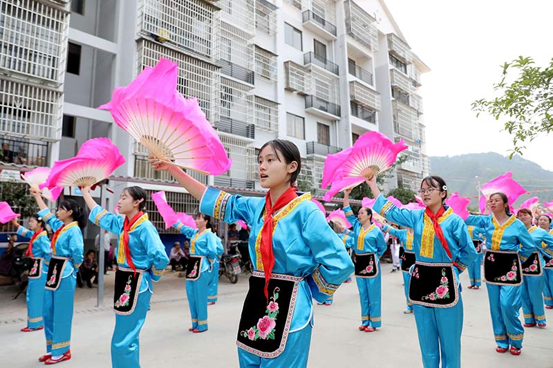 日前,广西三江侗族自治县70周年县庆非遗巡游展演三江彩调方块队在斗江镇易安家园着装排练,尽展侗乡非遗多姿风采。据了解,彩调形式活泼,通俗易懂,剧目内容十分贴近群众生活,具有浓郁的民族风情和地方特色,被誉为“充满泥土芬芳的快乐剧种”,三江彩调已于2016年列入自治区级非遗名录。