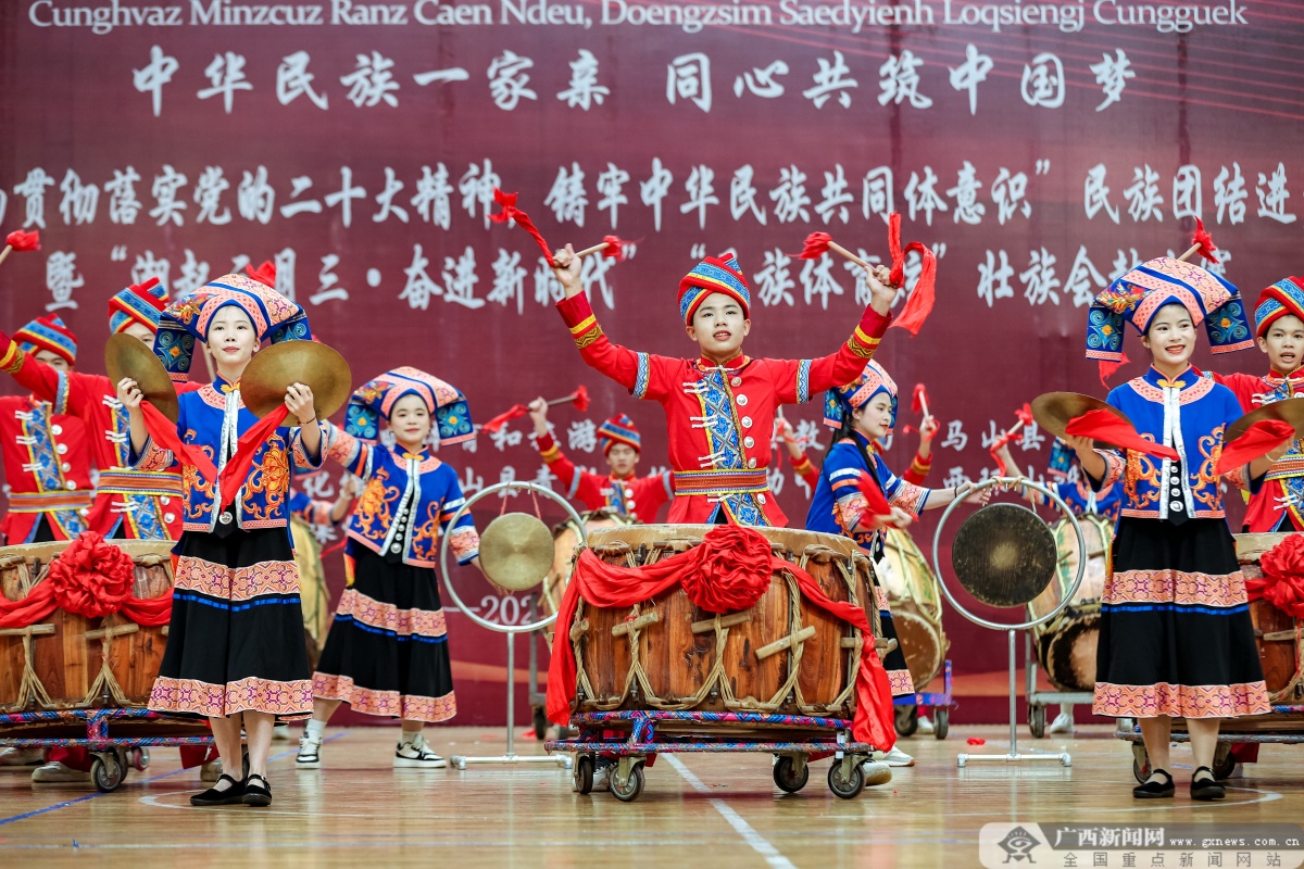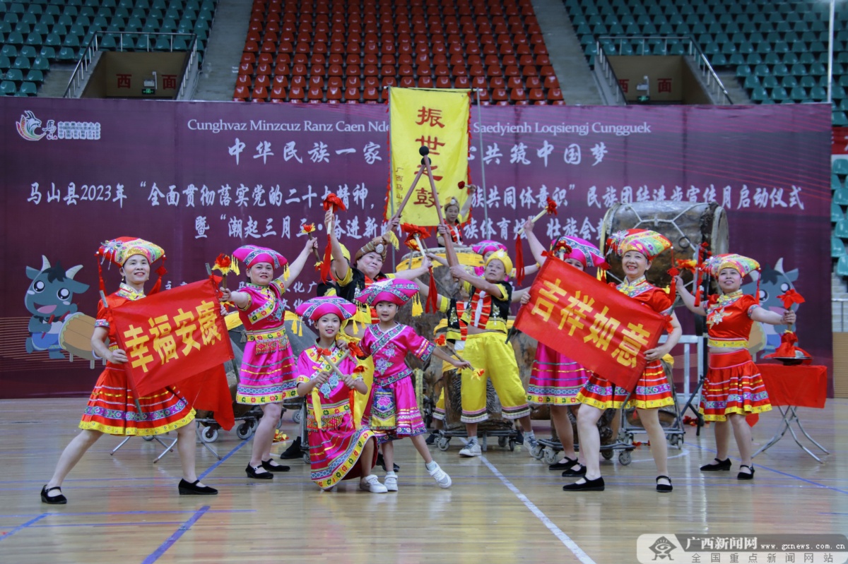 广西新闻网马山5月11日讯(通讯员 任红伟 韦璐)5月10日,南宁市马山县2023年“全面贯彻落实党的二十大精神,铸牢中华民族共同体意识”民族团结进步宣传月启动仪式暨“潮起三月三·奋进新时代”“民族体育炫”壮族会鼓大赛在马山县体育馆隆重举行。