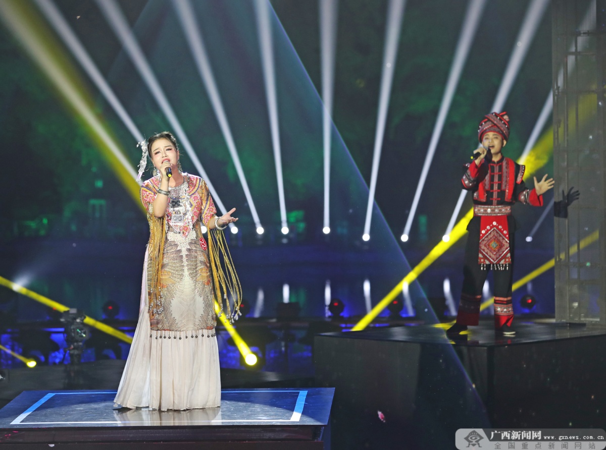 “看到流水,就能看到爱情的模样……”十强选手银悦西和袁泉在总决赛中带来一曲原创水族情歌《希普都爱》。获全国“仫佬族之花”称号的银悦西,曾代表仫佬族参加北京奥运会开闭幕式演出,袁泉是广西乐坛的资深唱将,民通跨界的青年歌手,两人珠联璧合的演绎,唱出了山水之间的浓情蜜意。