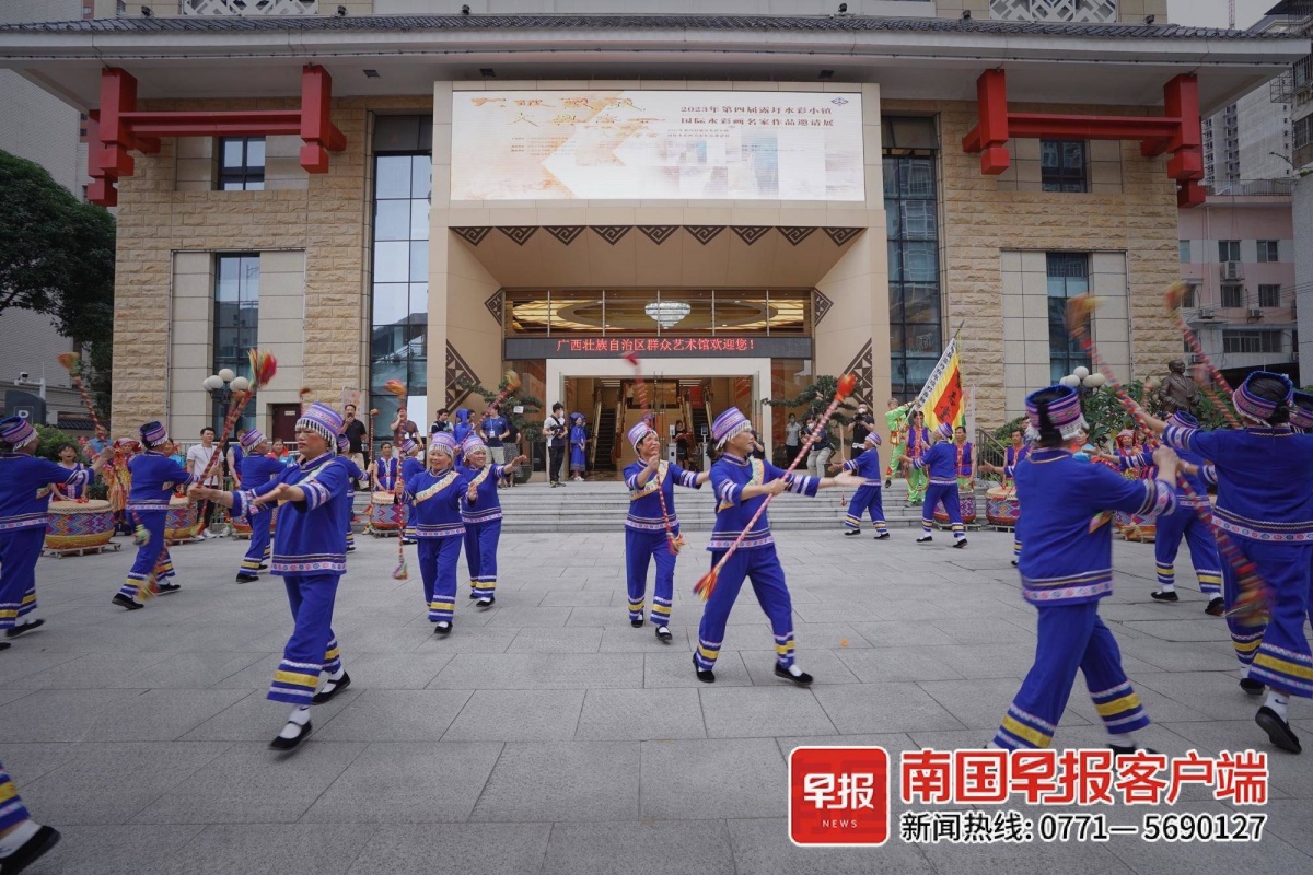 此次展览结合自治区级非物质文化遗产——“宾阳县露圩镇壮族圩逢节”同时开展。在当天的画展开幕式上,举行了壮族战鼓、壮族山歌、壮族舞彩凤和打钱尺等丰富多彩的民族文化展演。