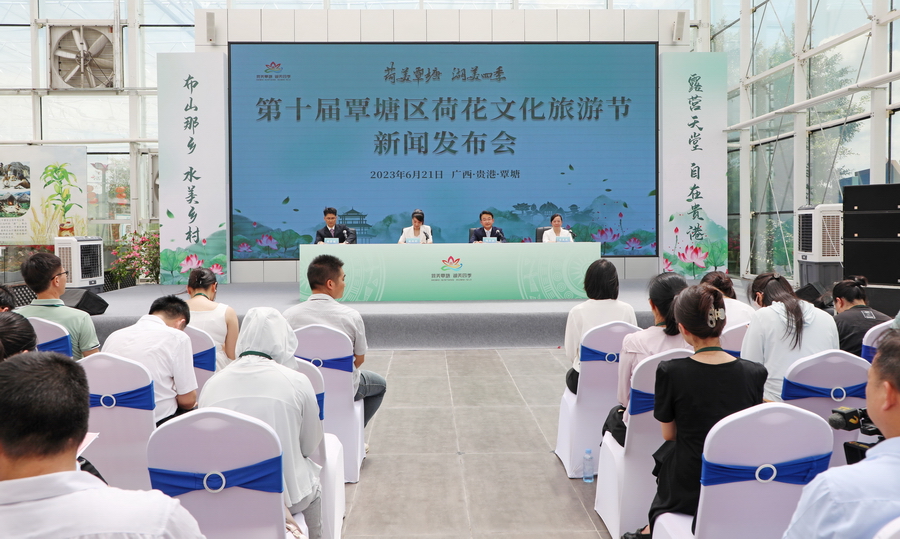 ▲荷美覃塘 湖美四季第十届覃塘区荷花文化旅游节新闻发布会现场(覃塘区融媒体中心供图)