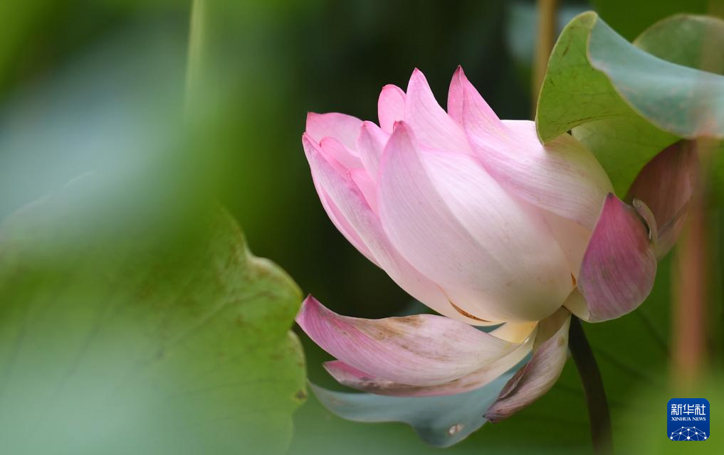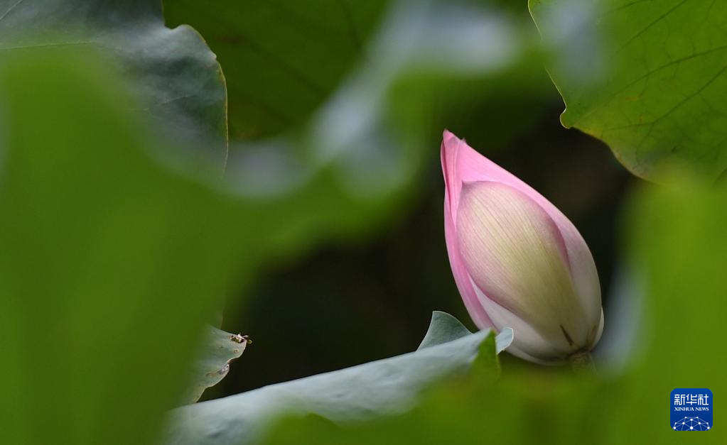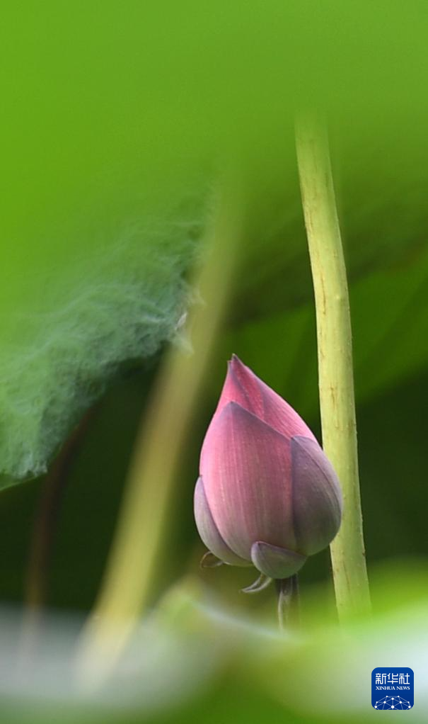 酷暑时节,广西南宁市南湖荷花有的含苞待放,有的已经悄然绽放。