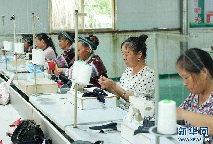 在融水洞头村洞头轻纺就业帮扶工厂,农家女在各自的岗位上忙碌。
