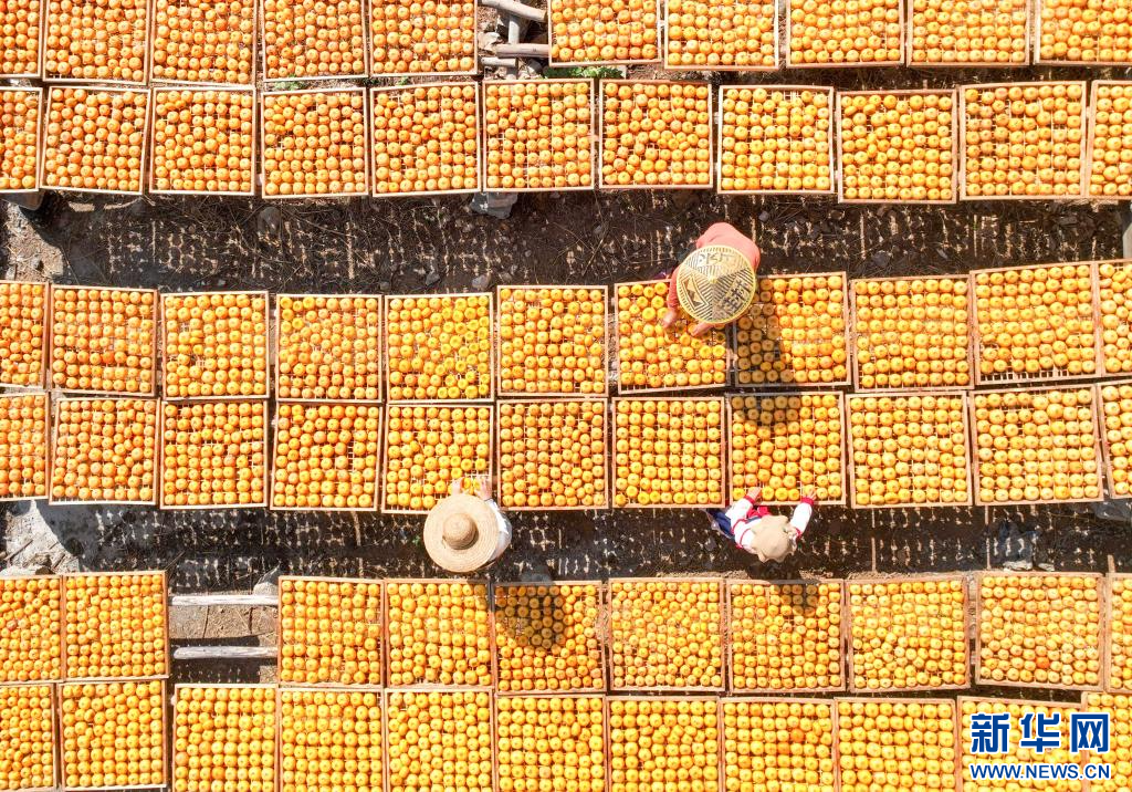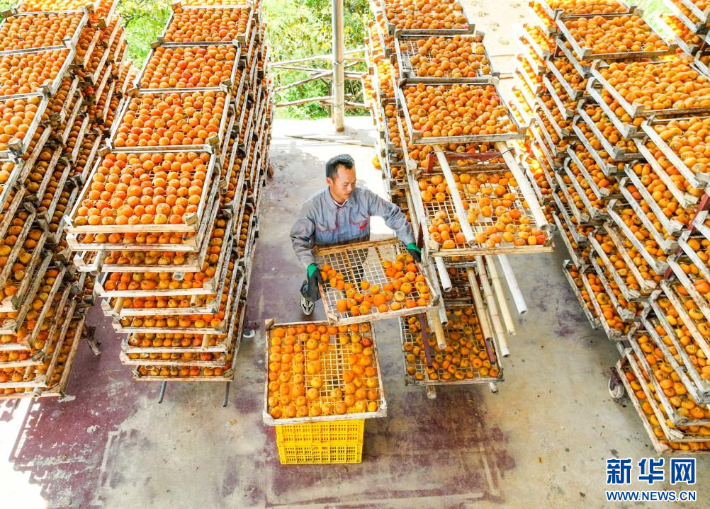 时下,广西桂林市恭城瑶族自治县的柿子迎来收获加工季,当地村民趁着晴好天气加紧对采收的柿子进行去皮、晾晒加工,供应市场。