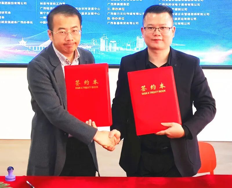 与南宁茶博六堡茶业有限公司法人黄海东签约