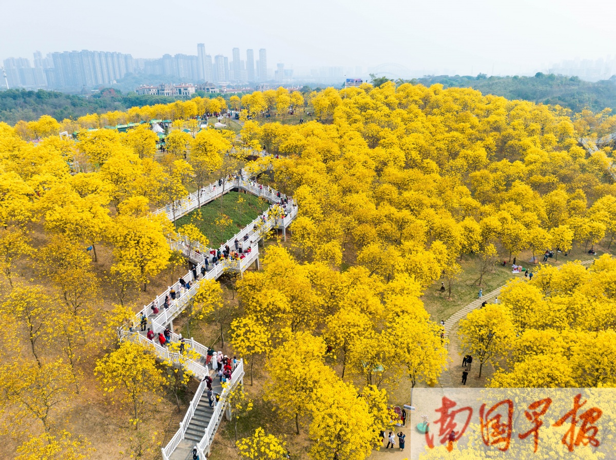春天黄花风铃木绽放时,南宁市青秀山美如画。记者 邹财麟 摄