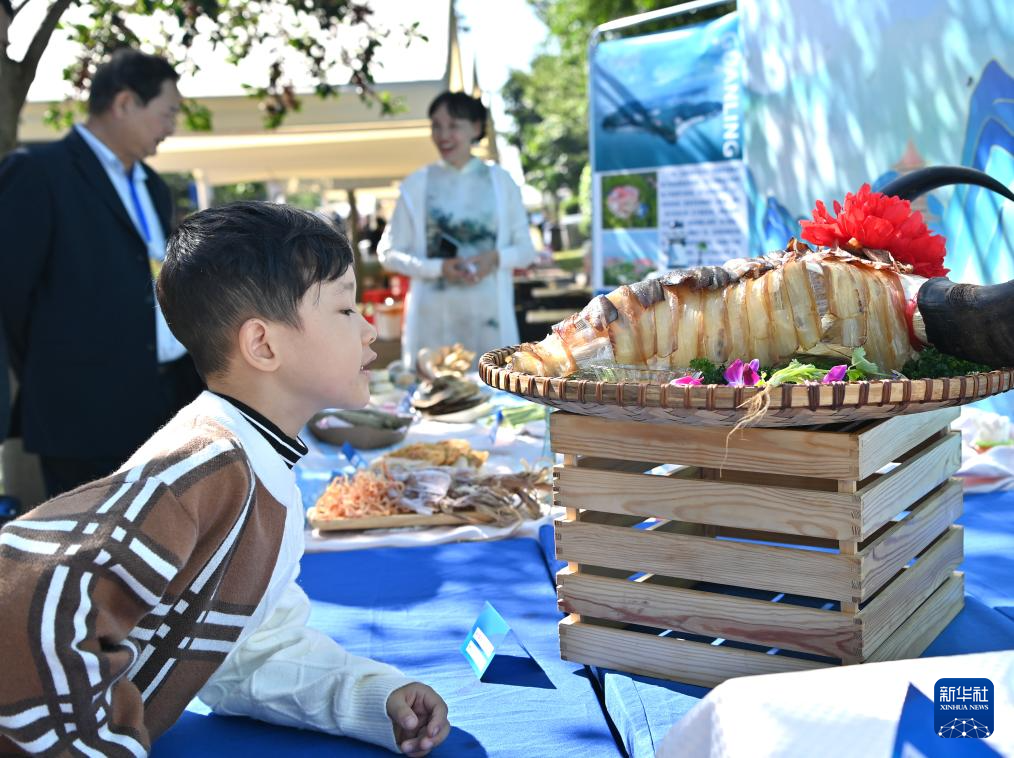 11月18日,一名小朋友被美食吸引。