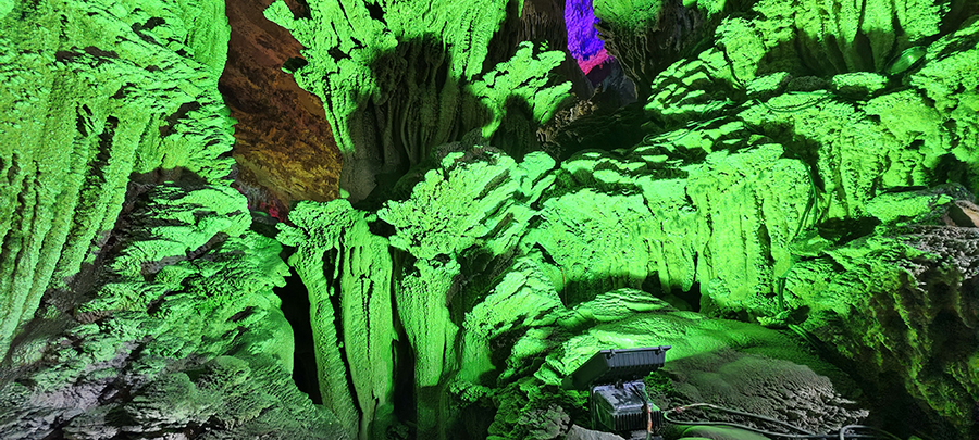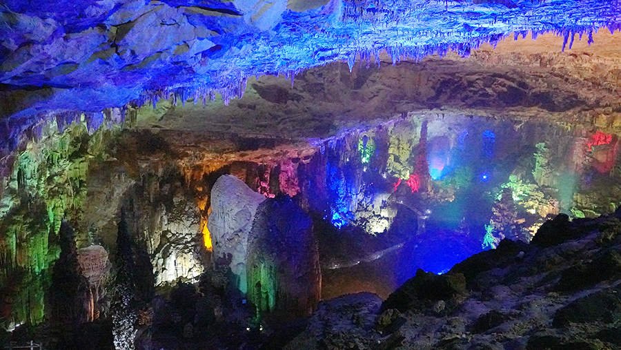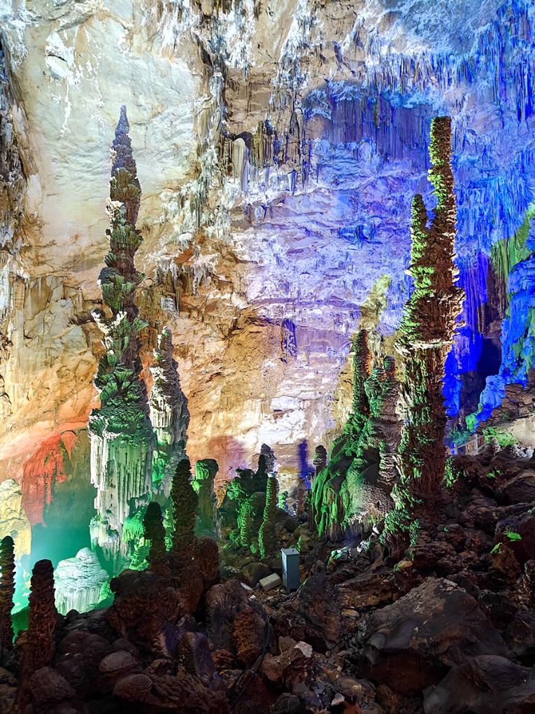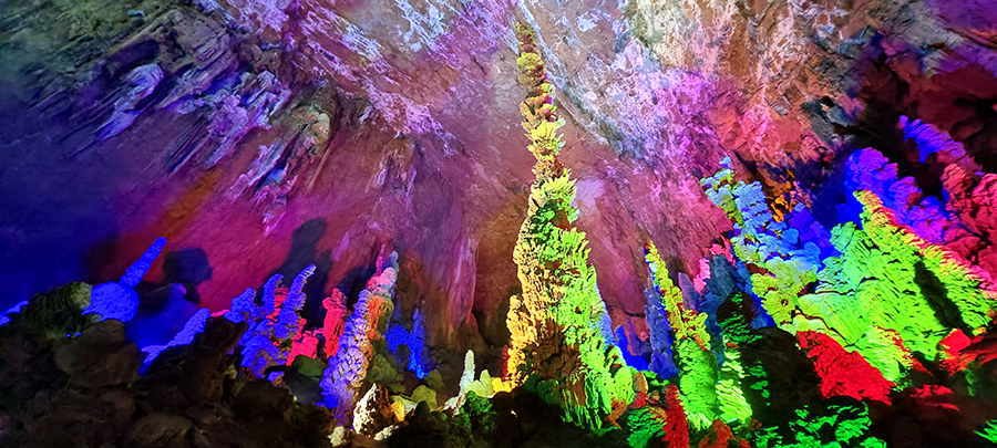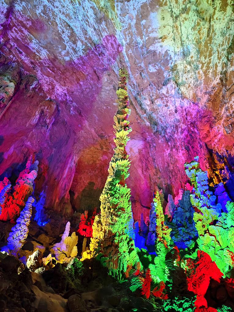 冬日,走进广西乐业—凤山世界地质公园鸳鸯洞景区,洞中石柱、石笋、石幔琳琅满目,形态动人,栩栩如生,有龙腾虎跃、巨龙盘绕、大瀑奔流,也有奇浪飞溅、鸳鸯戏水、银碟飞舞。洞内石笋不计其数,聚集形成奇特的洞中石林景观。最高石笋高达36.4米,像擎天巨柱直插天空。