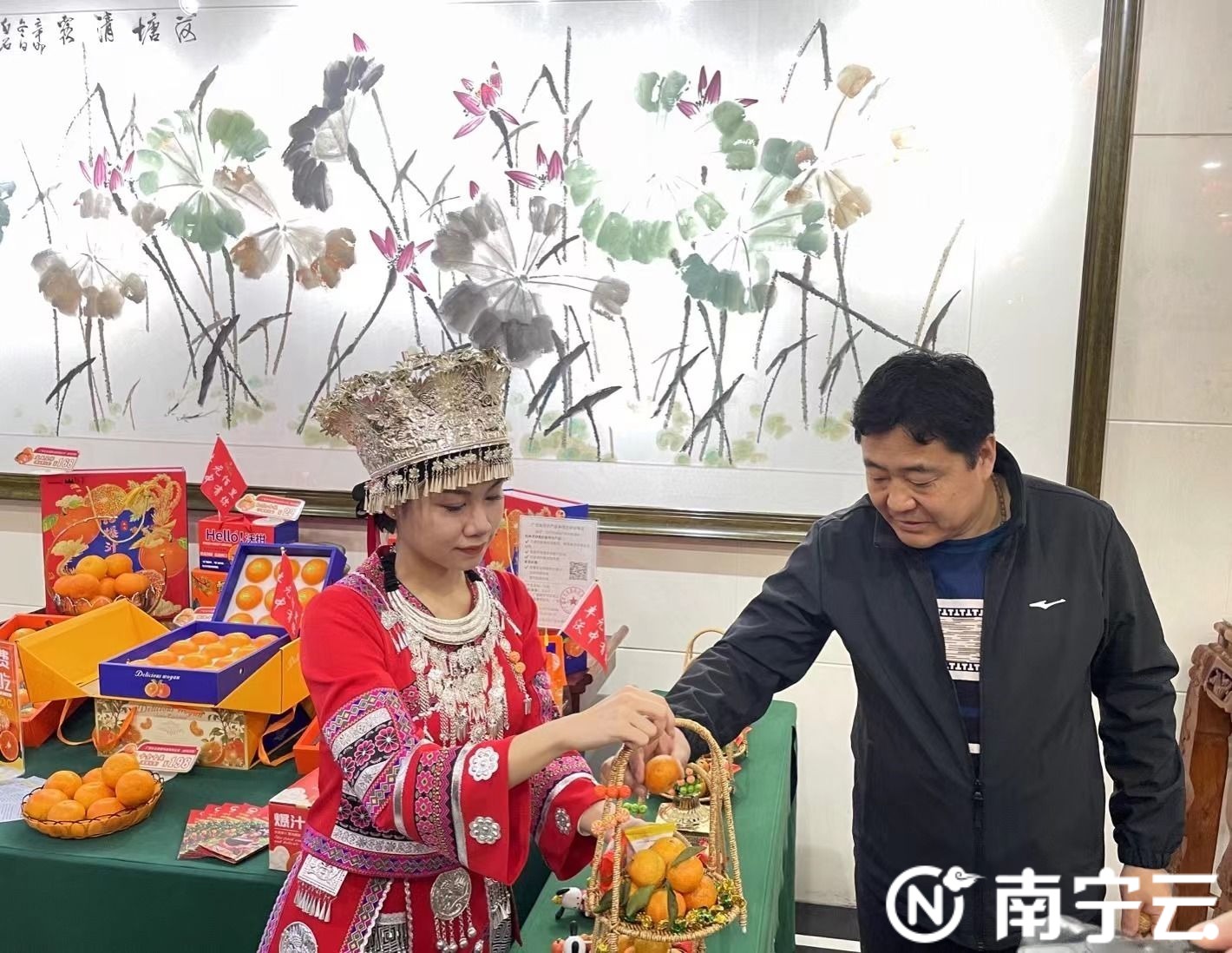 南宁明园饭店在酒店大堂布置了沃柑砂糖橘免费品尝区。记者 邓玲 摄
