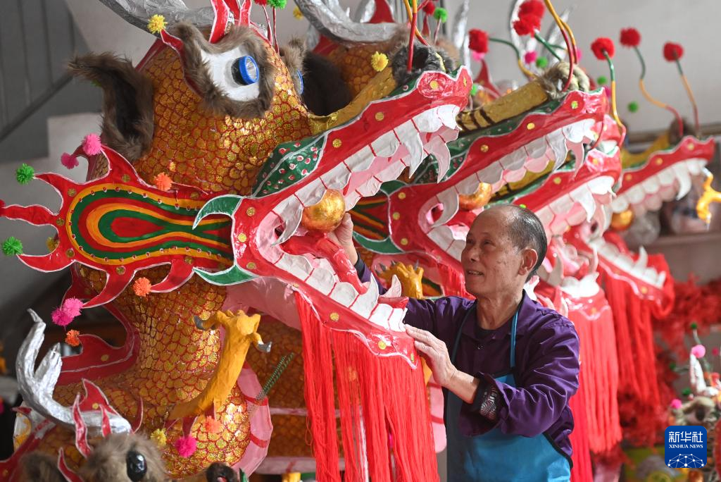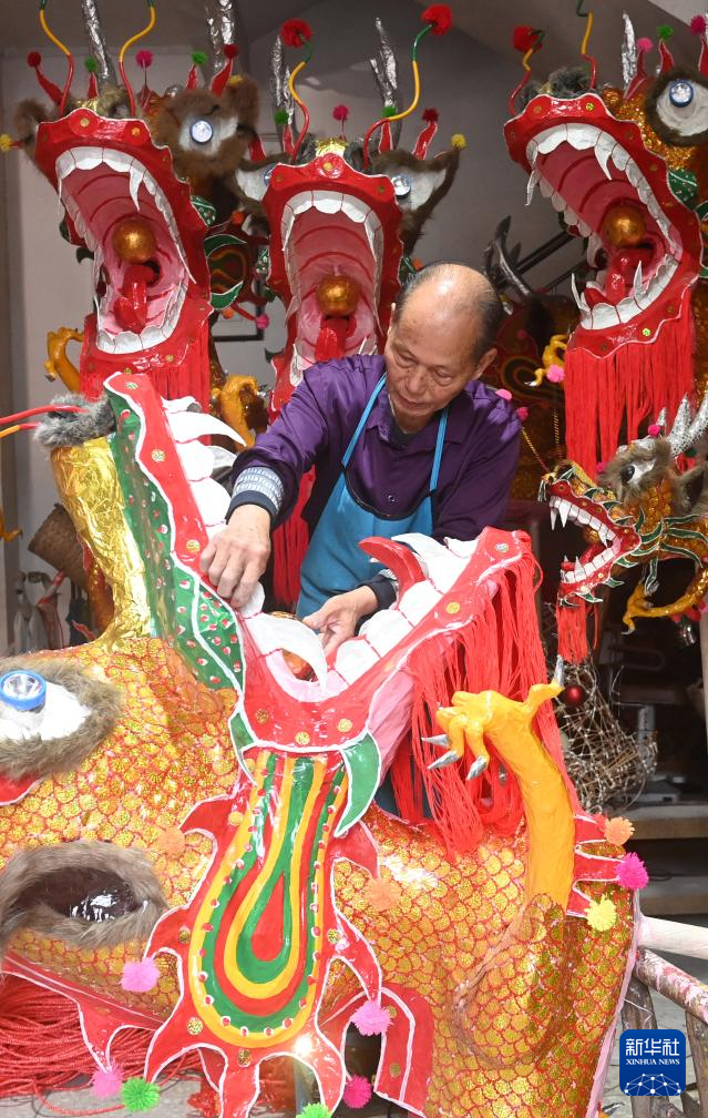 1月16日,在广西宾阳县宾州镇三联街,邹玉特在装龙珠。