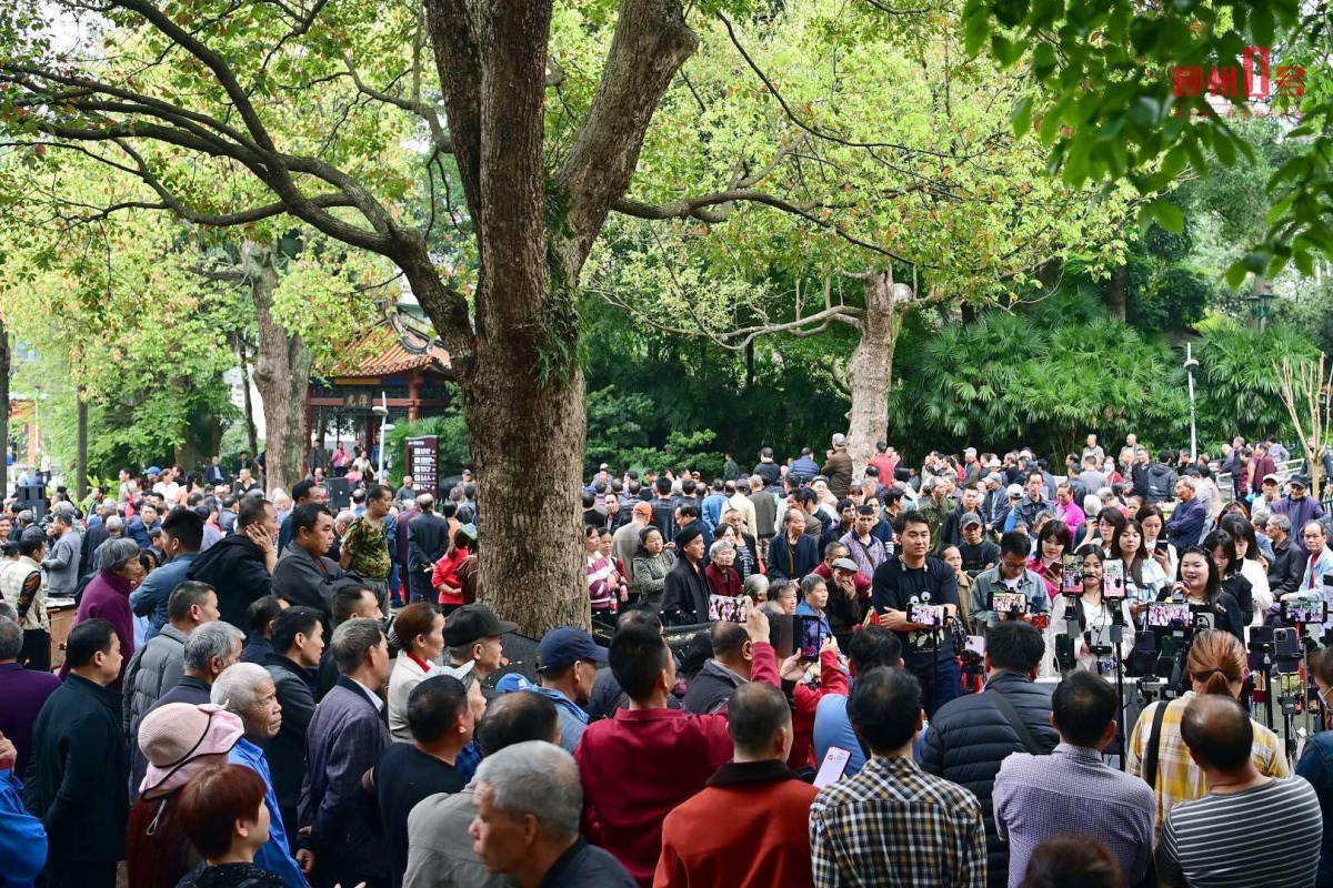 以前,鱼峰公园的山歌爱好者集中在自由对歌区。近年,随着传播平台多样化,又自发划分出了视频直播区。