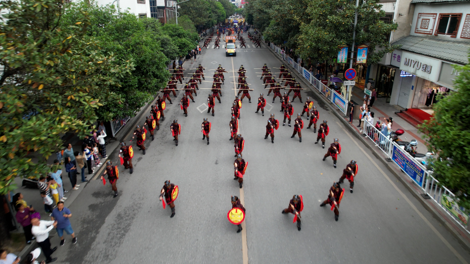 ▲南丹狼兵沿主干道巡演。林晓祺 摄
