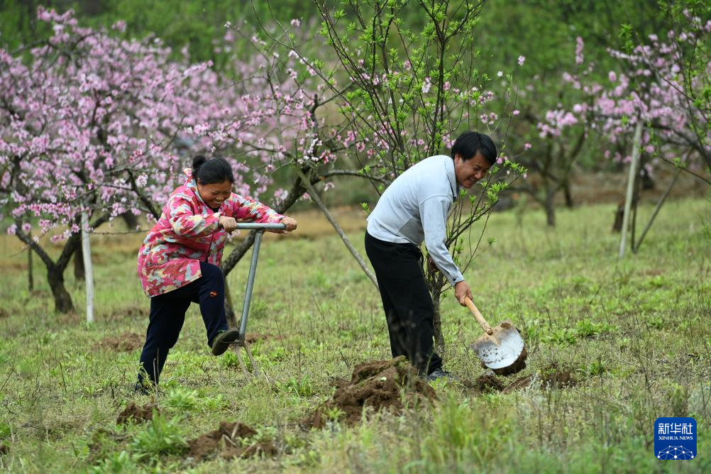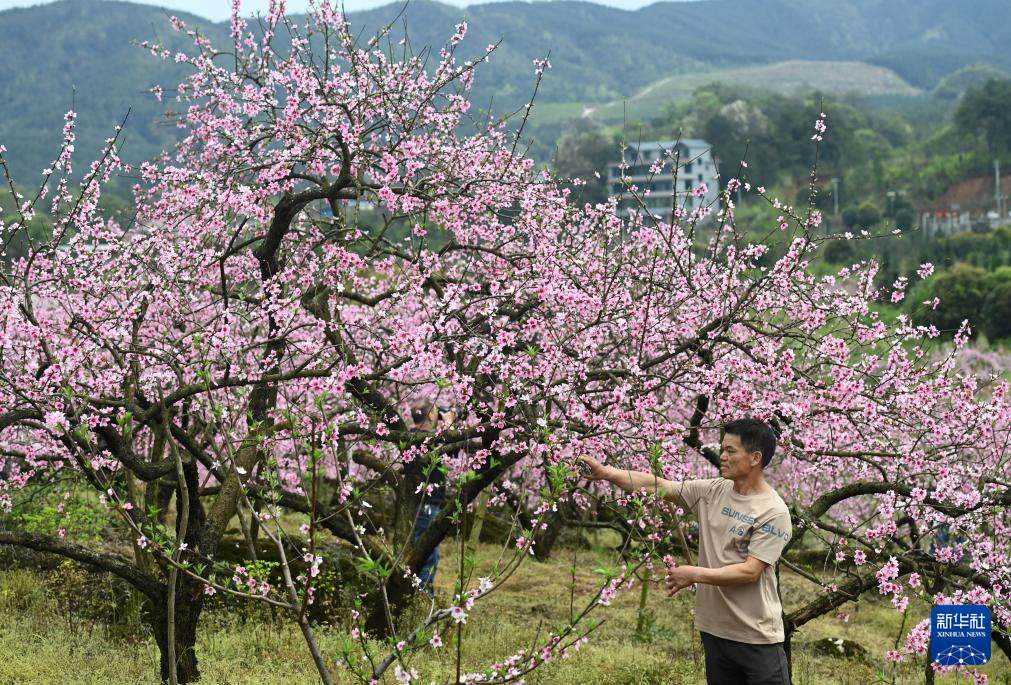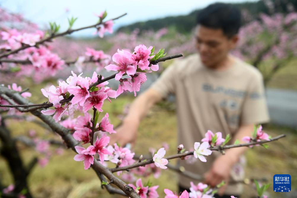春分时节,广西灌阳县水车镇官庄村桃花大面积开放,当地村民纷纷下地为桃树剪枝、除草、培土和施肥。近年来,灌阳县水车镇官庄村大力发展桃树种植,全村已有3000多亩桃园,是当地群众经济收入一项重要来源。