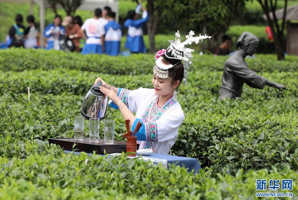 图为当地群众在茶园展示茶艺。龚普康 摄
