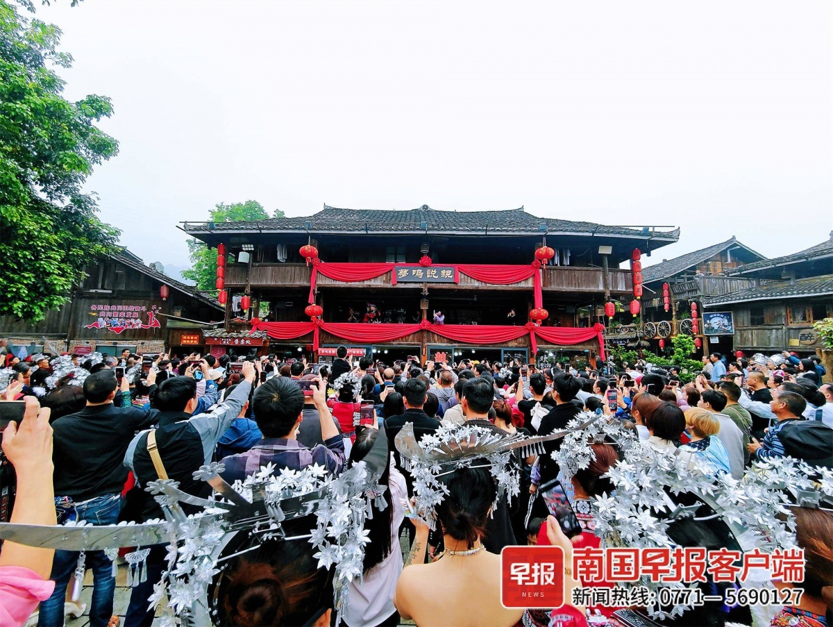 苗族人一直保留着“斗马选婿”的传统习俗,融水苗族自治县文化体育广电和旅游局局长周卫军介绍,融水的苗寨景区一直有相亲旅游项目,这次借着“王婆说媒”也火了一把。旅游+相亲的形式,让年轻人在轻松愉悦的氛围中选择对象,是文旅融合赋能的新体现。